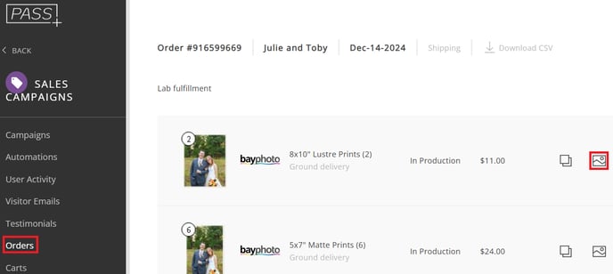 When a client places an order, the photos from their gallery are used to create store items. If needed, you can send the JPEG order files to your client automatically (available for self-fulfilled products only) or manually.