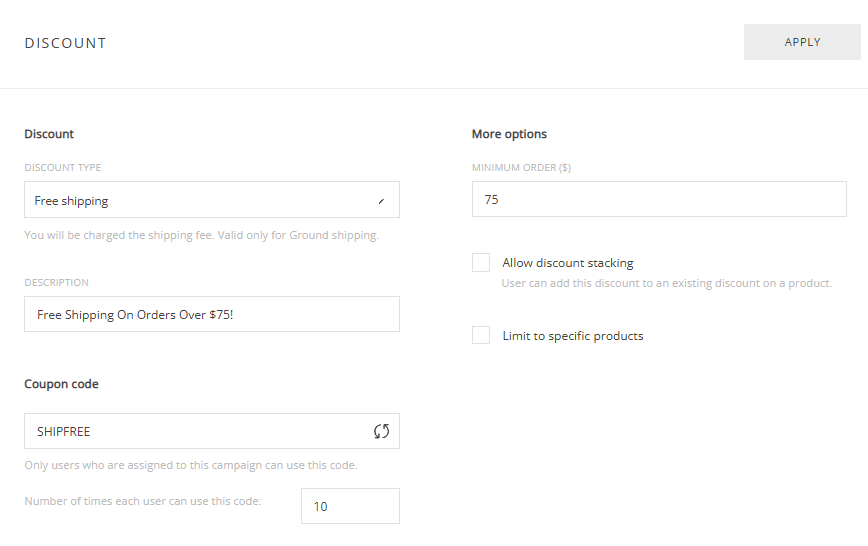 - Discount Type: Free Shipping