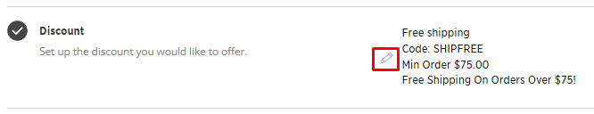 Click the pencil icon to edit the discount settings.