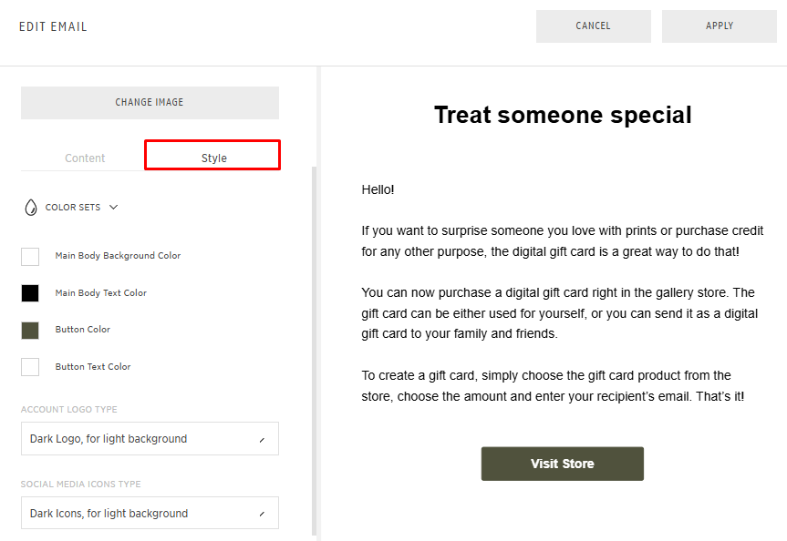 Customize the visual appearance of your email, including colors, logo style, and button design. This allows you to align the email with your brand identity while keeping the structure intact.