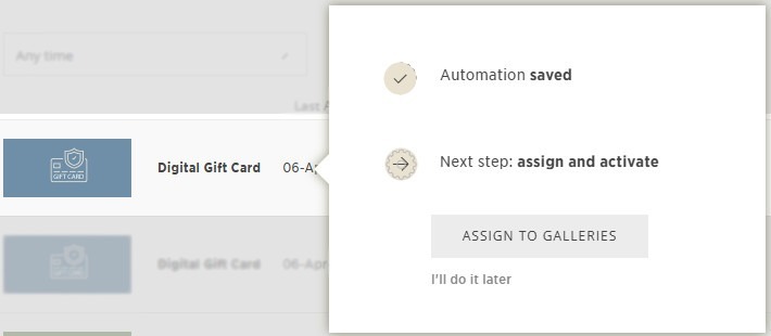 Now, your Digital Gift Card Automation is ready to promote gift cards, engage your gallery visitors, and drive sales🎁🚀