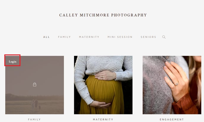 For easy access, direct clients to this generic landing page, allowing them to log in and see their galleries: