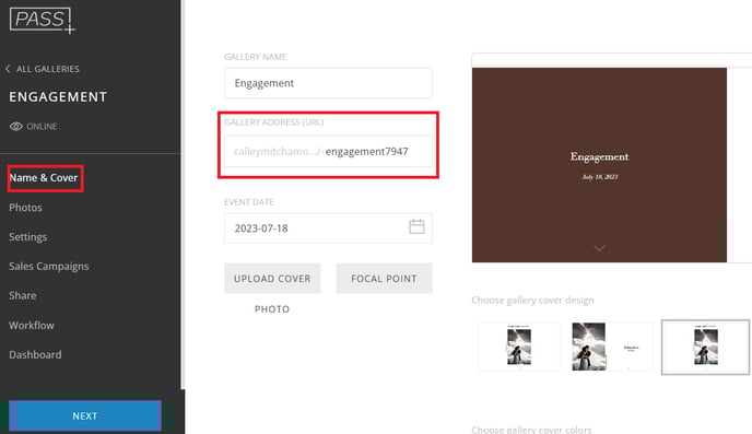 Your URL will look like this: yourphotographystudio.passgallery.com, redirecting clients to a page like yourphotographystudio.passgallery.com/portfolio.